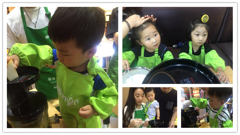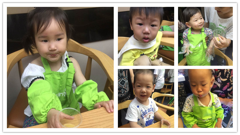 看看宝贝们认真榨果汁的样子