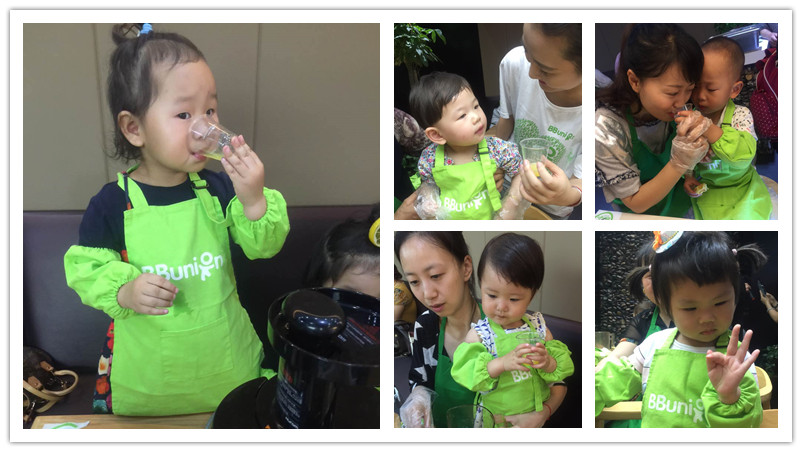 宝贝们都迫不及待自己动起手来榨果汁了